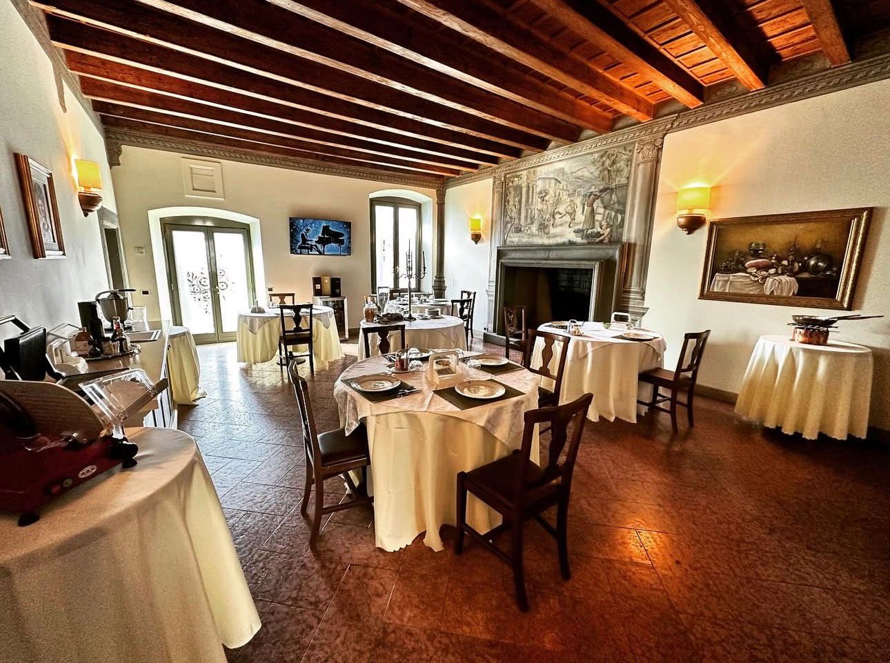 La prima colazione servita nella suggestiva Sala del Camino